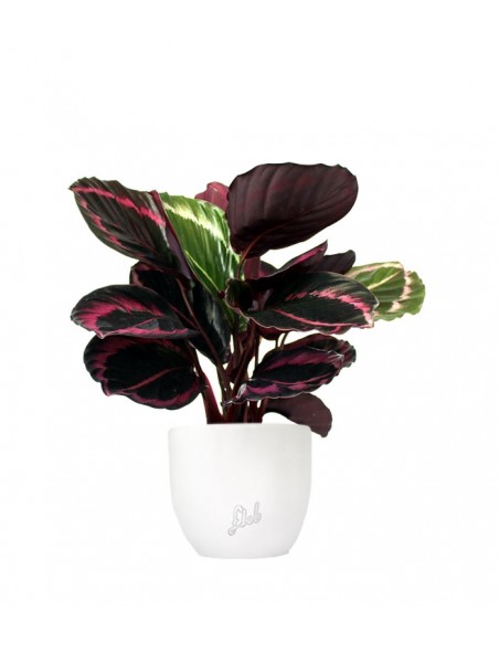 Può capitare che in alcune di queste calathee, diverse foglie si presentino verdi con lo stesso tratteggio delle altre, ma di colore rosa più chiaro o bianco. E' una particolarità che la rende ancora più attraente come pianta da interno!