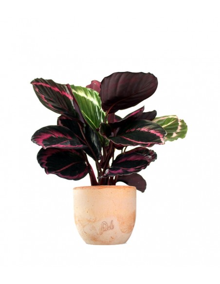 Può capitare che in alcune di queste calathee, diverse foglie si presentino verdi con lo stesso tratteggio delle altre, ma di colore rosa più chiaro o bianco. E' una particolarità che la rende ancora più attraente come pianta da interno!