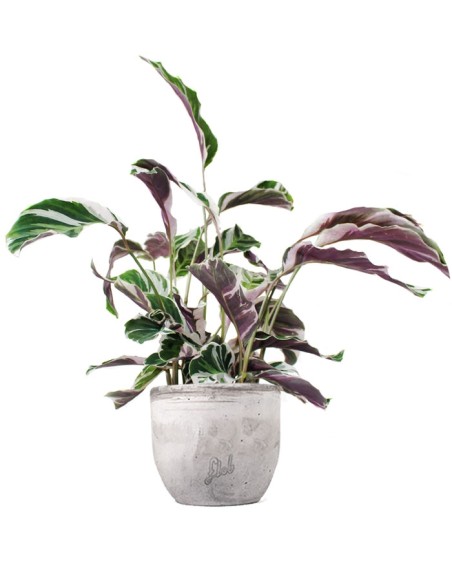 La Calathea White fusion è una pianta tropicale proveniente dal Brasile, Guyana, Colombia e Nicaragua. Le sue foglie sono finemente 'pennellate' di verde, lilla e bianco: quest'ultimo è prevalente e, come per altre calathee, è un motivo di distinzione perchè crea un mix di tinte molto delicato, ma allo stesso tempo estremamente attraente (fusion white deriva probabilmente dal modo in cui le variegature delle foglie incrociano i loro colori).