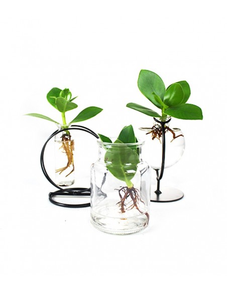 Una versione di clusia a “radice nuda” inserita all'interno di una piccola fiala di vetro sospesa. La struttura di metallo che la sorregge è caratterizzata da forme eleganti e minimal. Un oggetto dall'indiscusso effetto scenico che donerà un tocco di stile alla vostra casa. Un complemento d'arredo di design che rende questa clusia ideale per essere inserita in qualsiasi ambiente, da sola oppure abbinata ad altri vasi della stessa collezione. Trattandosi di una pianta coltivata con l'idrocoltura, la sua cura non richiede grandi accortezze, se non quella di aggiungere acqua concimata non appena il livello dell'acqua presente nel vaso scende oltre il livello richiesto. La Clusia deve essere posta in una zona illuminata, ma non esposta alla luce solare diretta. Non sopporta le temperature inferiori a 18°.