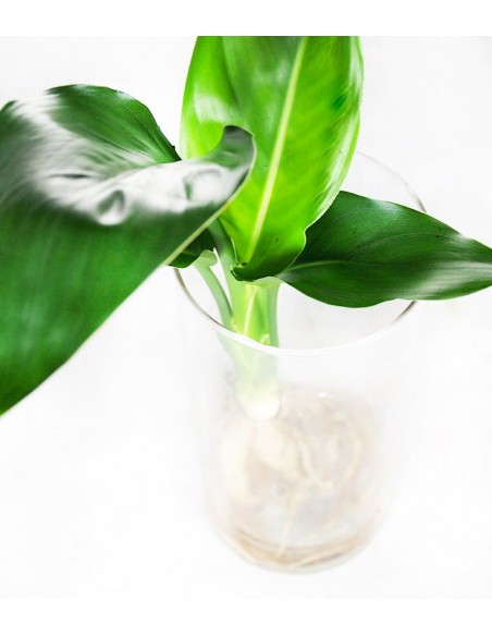 In questo caso ritroviamo la strelitzia all'interno di un vaso in vetro, con le radici nude e un portamento elegante. Si tratta di una pianta di sicuro effetto scenico, perfetta per donare un tocco di stile al vostro living. Un oggetto dal design minimal ma con una resa davvero wow!