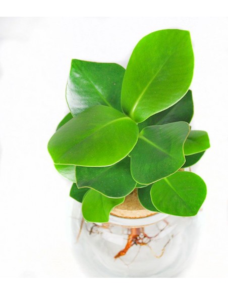 Se state cercando qualcosa di particolare e insolito per decorare scrivanie o coffee table, questo è ciò che fa per voi! Sebbene Ie piante idroponiche non siano molto comuni, rappresentano un'interessante tecnica di “giardinaggio in casa“, che richiede molto meno impegno rispetto ai classici metodi di coltivazione. Una delle piante che rendono meglio in idrocoltura è la Clusia, una pianta che riesce a passare dalla terra all'acqua senza nessun problema. Si tratta di un arbusto dalle foglie verdi, tondeggianti e lucide che in natura vive nelle foreste dell'America Centrale. In natura produce, durante la stagione estiva, mazzetti di fiori color rosa-crema e può crescere fino a 2-3 metri in altezza.
