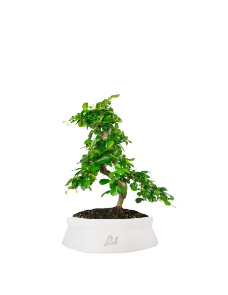 Fiori Delicati: Durante la fioritura, il Bonsai si arricchisce di fiori bianchi profumati che aggiungono una nota di freschezza.
