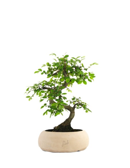 Si tratta del bonsai ideale per dare alla propria abitazione un tocco suggestivo, senza impegnarsi in una coltivazione impegnativa. Chiamata anche olmo giapponese, la Zelkova ha foglie verdi e dentellate che nella stagione autunnale, prima della caduta, assumono un colore giallo arancio, regalando alla tua casa l'atmosfera tipica di questo periodo dell'anno. La coltivazione di tale bonsai è molto semplice e anche i principianti non si troveranno in difficoltà: se hai la fortuna di avere uno spazio all'aperto, questa Ulmacea si adatta bene in posizioni soleggiate, a patto di ombreggiarla quando il calore è eccessivo. Nel corso dell'inverno, specialmente se le temperature sono molto rigide, è sufficiente proteggere le fronde e il vaso con un foglio di tessuto-non-tessuto. Altrimenti lasciala vivere all'interno, ma evita di alternare le due collocazioni. Un paio di volte al mese fertilizza il tuo albero in miniatura e potalo in autunno, eliminando i rami che crescono in modo disordinato. Per quanto riguarda le annaffiature: non esagerare e, prima di ripetere l'operazione, lascia asciugare bene il terreno. Il rinvaso deve essere fatto ogni due anni, utilizzando terriccio specifico. Una pianta scenografica accompagnata da un contenitore altrettanto d'effetto.
