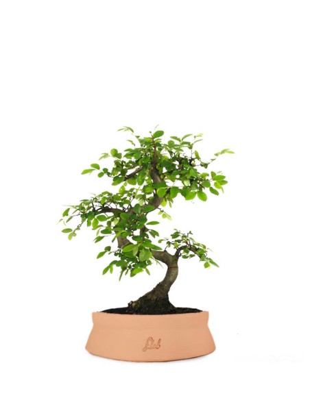 Si tratta del bonsai ideale per dare alla propria abitazione un tocco suggestivo, senza impegnarsi in una coltivazione impegnativa. Chiamata anche olmo giapponese, la Zelkova ha foglie verdi e dentellate che nella stagione autunnale, prima della caduta, assumono un colore giallo arancio, regalando alla tua casa l'atmosfera tipica di questo periodo dell'anno. La coltivazione di tale bonsai è molto semplice e anche i principianti non si troveranno in difficoltà: se hai la fortuna di avere uno spazio all'aperto, questa Ulmacea si adatta bene in posizioni soleggiate, a patto di ombreggiarla quando il calore è eccessivo. Nel corso dell'inverno, specialmente se le temperature sono molto rigide, è sufficiente proteggere le fronde e il vaso con un foglio di tessuto-non-tessuto. Altrimenti lasciala vivere all'interno, ma evita di alternare le due collocazioni. Un paio di volte al mese fertilizza il tuo albero in miniatura e potalo in autunno, eliminando i rami che crescono in modo disordinato. Per quanto riguarda le annaffiature: non esagerare e, prima di ripetere l'operazione, lascia asciugare bene il terreno. Il rinvaso deve essere fatto ogni due anni, utilizzando terriccio specifico. Una pianta scenografica accompagnata da un contenitore altrettanto d'effetto.