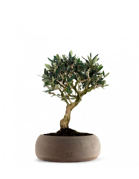 Le nostre piante di olivo bonsai sono interrate in comodi ed eleganti vasi di 20 centimetri di diametro, disegnati e creati da Flob utilizzando esclusivamente argilla italiana: acquistala nel nostro negozio online, ti arriverà direttamente a casa in un imballo studiato appositamente per preservala in ottimo stato.