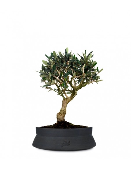 Le specie di olivo bonsai sono moltissime e differiscono soprattutto nella produzione dei frutti, mentre nella struttura, che è quello che interessa il bonsaista, sono tutte abbastanza simili, con lievi differenze di dimensioni. Qui ti proponiamo l'olivo bonsai M, una varietà tra le più richieste con un'altezza dalla base del vaso di 35 centimetri.