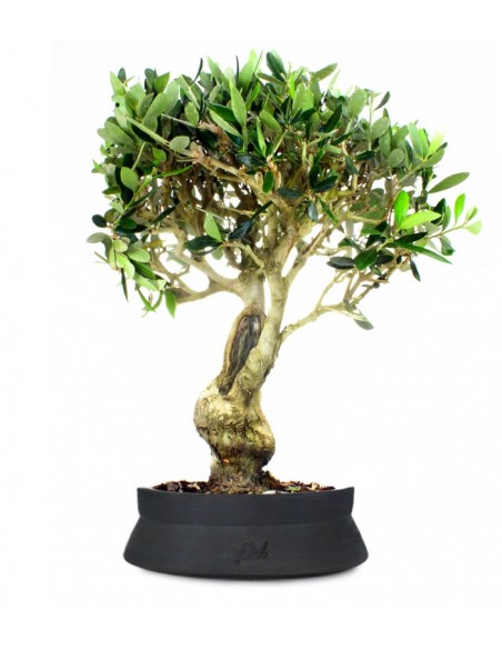 Le specie di olivo bonsai sono moltissime e differiscono soprattutto nella produzione dei frutti, mentre nella struttura, che è quello che interessa il bonsaista, sono tutte abbastanza simili, con lievi differenze di dimensioni. Qui ti proponiamo l'olivo bonsai XXL: deve il suo nome alle sue notevoli dimensioni rispetto alle altre varietà, visto che ha un'altezza dalla base del vaso di 55 centimetri. È sicuramente il più elegante tra i bonsai di olivo, grazie al suo tronco nodoso che gli conferisce un'aria di antichità.