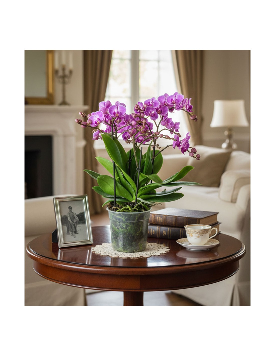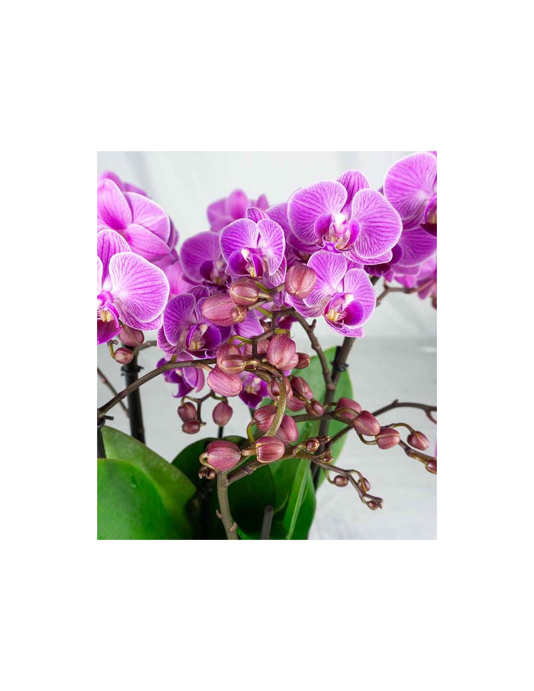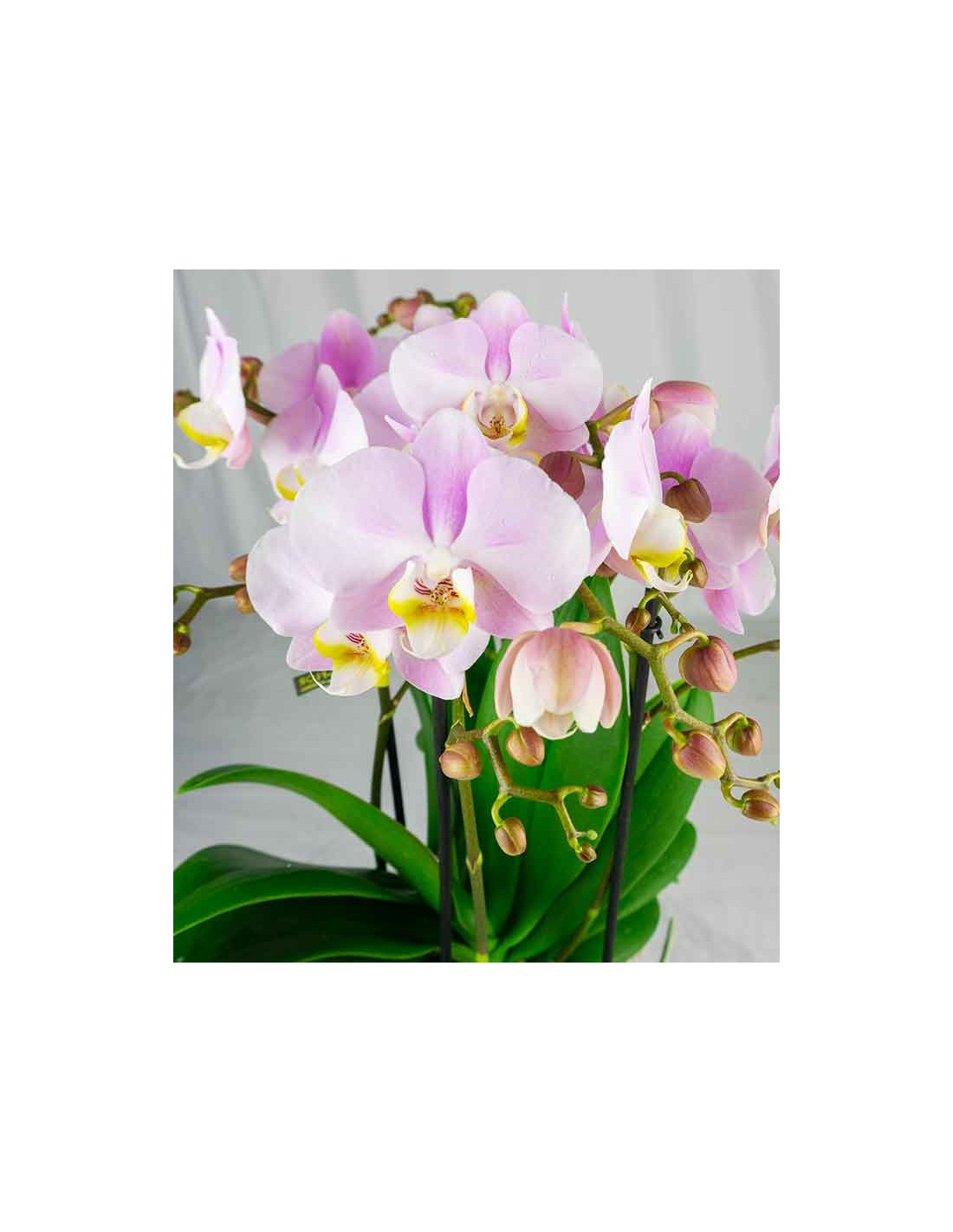 La Phalaenopsis, conosciuta anche come orchidea farfalla, è originaria delle foreste tropicali dell'Asia. Il suo nome deriva dal greco 'phalaina' che significa 'farfalla', in riferimento alla forma dei suoi fiori che ricordano le ali di una farfalla. Simbolo di bellezza, eleganza e amore, la Phalaenopsis è una delle orchidee più amate al mondo.