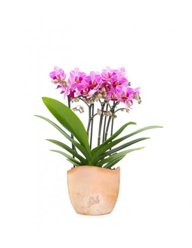 Orchidea tra le più belle e facili da coltivare, la Phalenopsis Boquetto si presenta con fiori dai lunghi petali a forma di stella, di colore rosa pallido con striature rosse. Sicuramente una pianta che cattura l'attenzione e affascina l'osservatore! Tra i tanti significati che le sono stati attribuiti, il più toccante è quello di fiore che porta fertilità e amore. Essendo originaria delle foreste pluviali tropicali ha particolari esigenze relative all'ambiente in cui viene coltivata: il suo vaso deve essere poco spesso e dovrebbe essere dotato di varie aperture per consentire l'areazione delle radici. La pianta ha bisogno di molta luce, ma teme i raggi diretti del sole: scegliete quindi un luogo non troppo ventilato e una temperatura tra 15 e 28 gradi. Garantitele il giusto livello di umidità, con uno strato di argilla espansa nel sottovaso e una leggera nebulizzazione sulle foglie nei mesi più caldi. Se possibile, utilizzate sempre acqua piovana. Riducete le innaffiature in autunno-inverno, prima del periodo della fioritura: questa fase di riposo, con meno luce e mancanza di acqua favorirà il processo di fioritura. Per il rinvaso utilizzate il terreno adatto alle orchidee e somministrate il concime specifico una volta al mese.