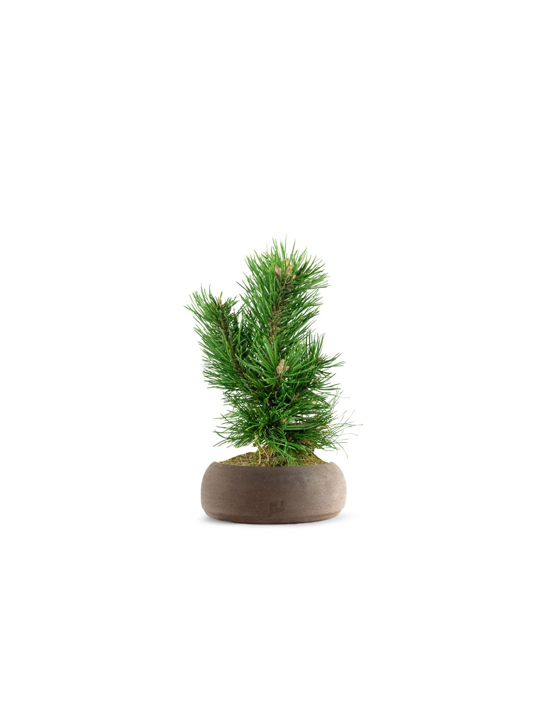 Il Pino mugo anche detto Pino montano o più semplicemente mugo, appartiene alla famiglia delle Pinaceae. È una conifera sempreverde cespugliosa e in natura può raggiungere i 20 metri di altezza. Cresce soprattutto sulle montagne dell'Europa centrale e meridionale dove è l'unica conifera che resiste a questa altitudine e che riesce a sopportare il clima freddo con pioggia, neve e vento secco. Fin dalla mitologia greca il Pino ha avuto grande risalto e ne è stato ampiamente sfruttato il simbolismo ed il nome. È rientrato spesso nelle citazioni poetiche di Ovidio, Virgilio e molti altri che lo descrivono come un albero sacro. È un bonsai forte e dall'aspetto rustico. Invecchiando le peculiarità di questa pianta si accentuano: la corteccia del tronco si apre con profonde fessure che gli conferiscono un aspetto vissuto e antico e la vegetazione si arricchisce definendo splendidi palchi. Le sue foglie sono aghiformi e presentano un colore verde intenso. Come per tutte le pinacee le pigne impiegano due anni per giungere a maturazione e nel primo anno rimangono molto piccole. Nella prima fase del loro sviluppo i pini sono caratterizzati da una bella forma piramidale, differenziando poi gradualmente parecchie impalcature: invecchiando mutano la propria sagoma da piramidale in figure più aperte e globose.