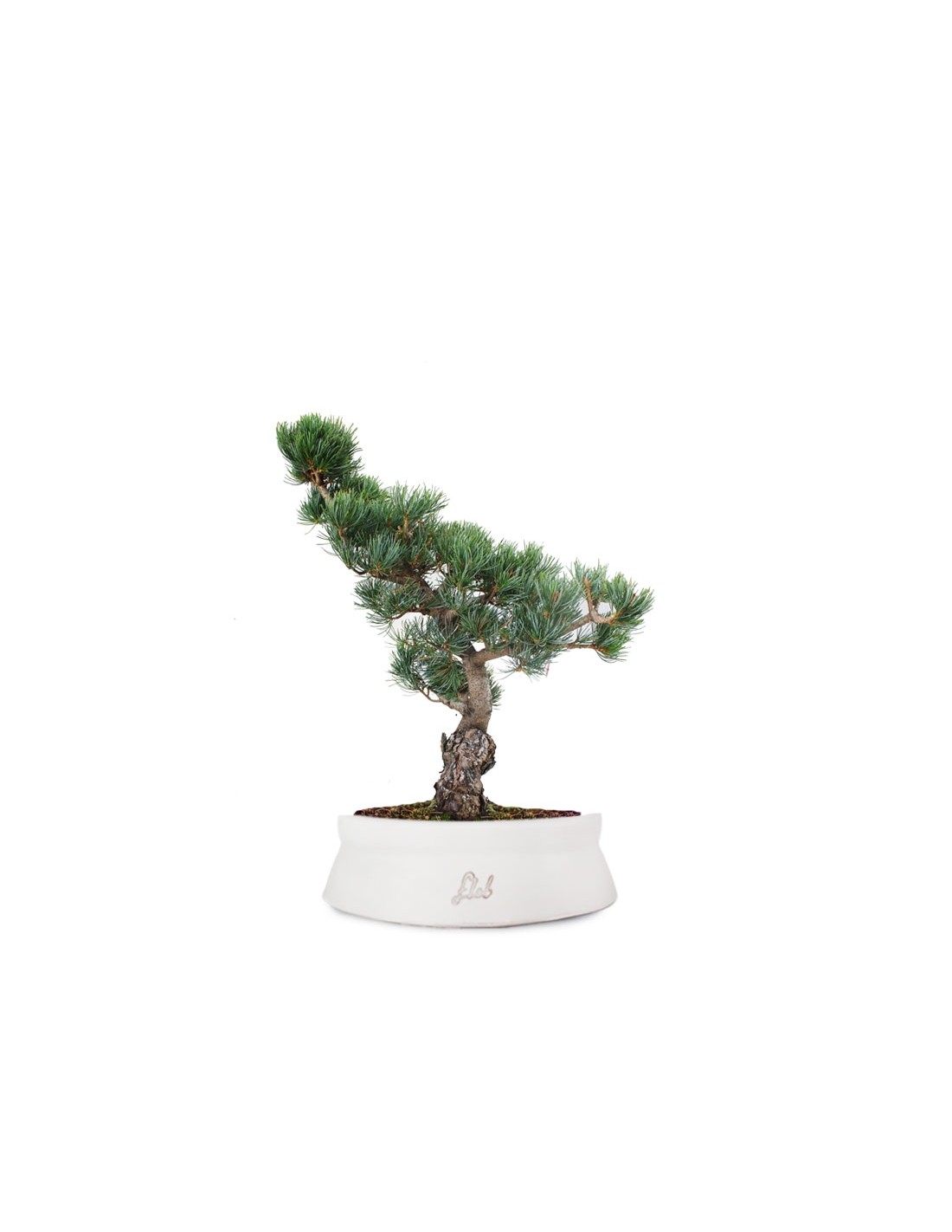 Il Pino Parviflora o anche detto pino bianco è spesso considerato come il re dei bonsai, per il suo aspetto forte e massiccio. L'antica tradizione giapponese vede il suo tronco, la sua ramificazione, la sua corteccia, come emblema di forza, bellezza, armonia e saggezza. Inoltre fin dalla mitologia greca il Pino ha avuto grande risalto e ne è stato ampiamente sfruttato il simbolismo ed il nome. È rientrato spesso nelle citazioni poetiche di Ovidio, Virgilio e molti altri che lo descrivono spesso come un albero sacro. Questa conifera sempreverde è originaria dell'Asia ed appartenente alla famiglia delle Pinaceae. Presenta aghi colore verde-azzurro e i germogli a candela spuntano a marzo/aprile, mentre ad ottobre avviene il ricambio dell'ago vecchio. Invecchiando, le peculiarità di questa pianta si accentuano: la corteccia del tronco si apre con profonde fessure che gli conferiscono un aspetto vissuto e antico e la vegetazione si arricchisce definendo splendidi palchi. Si tratta di una pianta molto longeva che ha dimostrato di poter vivere, coltivata come bonsai, per centinaia di anni, esistono infatti esemplari giapponesi si tramandano di generazione in generazione, scrivendo una propria storia.