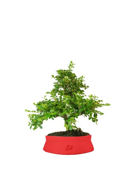 Il cotognastro bonsai è originario della Cina e delle terre fredde dell'Himalaya. La sua chioma segue le stagioni: il verde brillante delle foglie, puntellato da bacche arancioni o rosse simili a cotogne, si trasforma d'autunno in rosso intenso. All'estetica raffinata corrisponde la malleabilità del tronco che consente di ottenere molteplici design: i rami possono degradare verso il basso, creando l'effetto a cascata, oppure lasciare che il tronco si inerpichi su una roccia decorativa, o ancora apparire con una chioma perfettamente perpendicolare al tronco, secondo lo stile a scopa rovesciata. Predilige l'esposizione in pieno sole durante le mezze stagioni e d'inverno, ma non ama i raggi solari diretti sulle radici d'estate. Le annaffiature devono essere eseguite durante tutto l'anno, ma solo quando il terreno appare asciutto. Il miglior periodo per la potatura è fra dicembre e marzo: una volta eliminate le branche superflue, la pianta germoglierà con grande vigore, facendo spuntare un gran numero di rametti. Il rinvaso del bonsai può essere eseguito fra dicembre e marzo. Le piante giovani vanno rinvasate ogni anno, quelle più adulte ogni due anni.