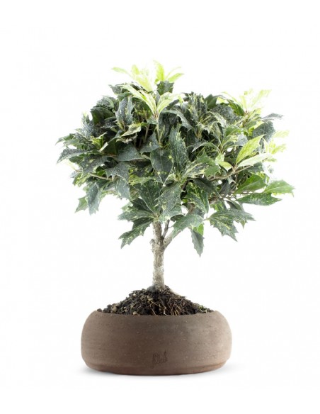 L'Osmanthus è una specie che si presta altamente alla coltivazione come bonsai. Largamente apprezzato per la ricchezza del fogliame, lucido e dal verde intenso, stupisce grazie agli splendidi fiori. Paragonati alla bellezza della Luna in virtù del loro color bianco crema, crescono riuniti in grappoli ed emanano un gradevolissimo profumo. Tale caratteristica è suggerita dalla stessa etimologia del nome: letteralmente 'fiore profumato'. In Cina, la tradizione vuole che i fiori dell'Osmanthus vengano utilizzati per aromatizzare il thé e i biscotti. I frutti, molto decorativi, sono di un intenso blu scuro. L'Osmanthus predilige le zone molto soleggiate, perciò posiziona il vaso in modo che la pianta possa godere in maniera diretta dei raggi solari. Innaffia soltanto quando il terreno è asciutto e favorisci la crescita con la somministrazione di un concime a base di azoto e potassio.