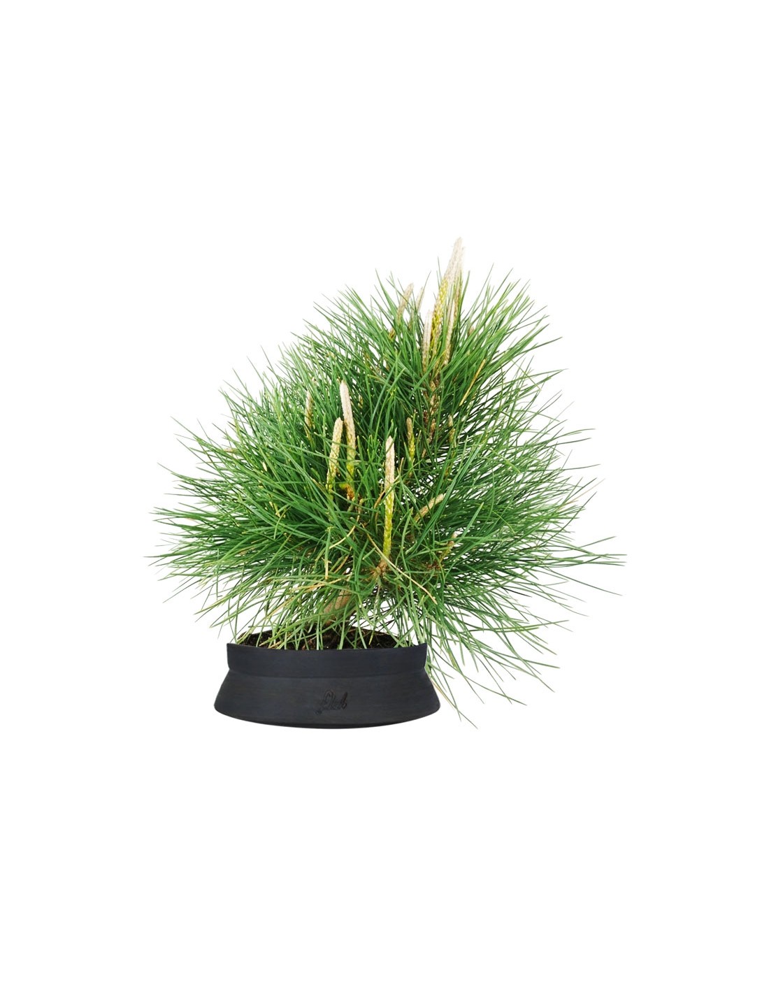 Chiamato comunemente 'pino nero giapponese', questo bonsai è apprezzatissimo per i suoi palchi e il suo tronco, che crescendo assumono forme contorte molto scenografiche, e per la sua relativa facilità di coltivazione. Le foglie sono dure, aghiformi e raggruppate a due a due. Il loro bel colore verde scuro crea un piacevolissimo contrasto con il marrone-crema dei rami e il bianco-grigio delle gemme terminali di ogni tralcio. Il Pinus thunbergii, chiamato così in onore del fisico svedese del 18° secolo Carl Peter Thunberg, è una delle piante più indicate per la coltivazione a bonsai e, anche in vaso, mostra una straordinaria longevità riuscendo a vivere anche per centinaia di anni. Adatta anche ai neofiti, questa pianta ha bisogno di una posizione luminosa e ventilata, di innaffiature regolari, aspettando che la terra si asciughi completamente prima innaffiare di nuovo, e di un buon concime organico specifico per bonsai da marzo fino a ottobre ogni 15 giorni. Seguendo queste semplici indicazioni crescerà sano e rigoglioso regalandoti una piccola oasi zen all'interno di casa tua.