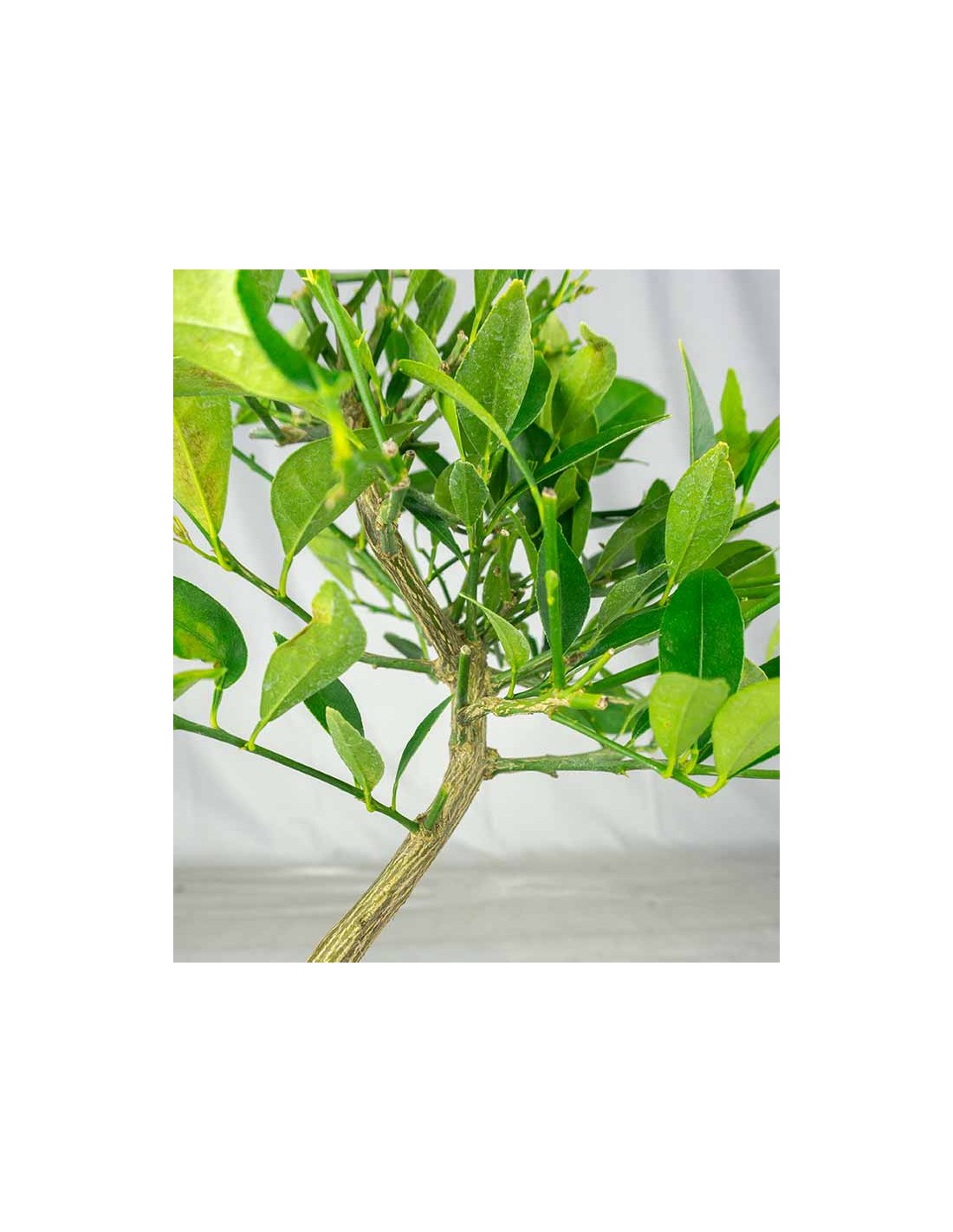 Questo bonsai di limequat di 7 anni è una pianta giovane ma già ben strutturata, con fogliame fitto e crescita equilibrata. La coltivazione bonsai permette di valorizzare l'aspetto ornamentale del citrus limequat, mantenendo la pianta compatta e armoniosa.