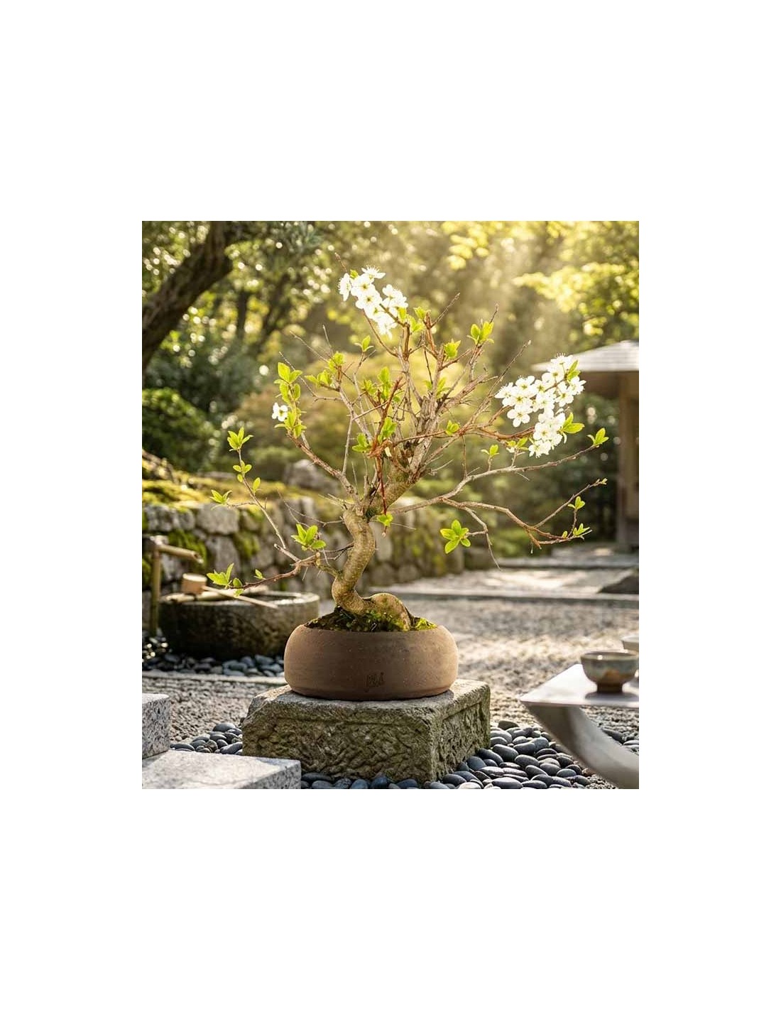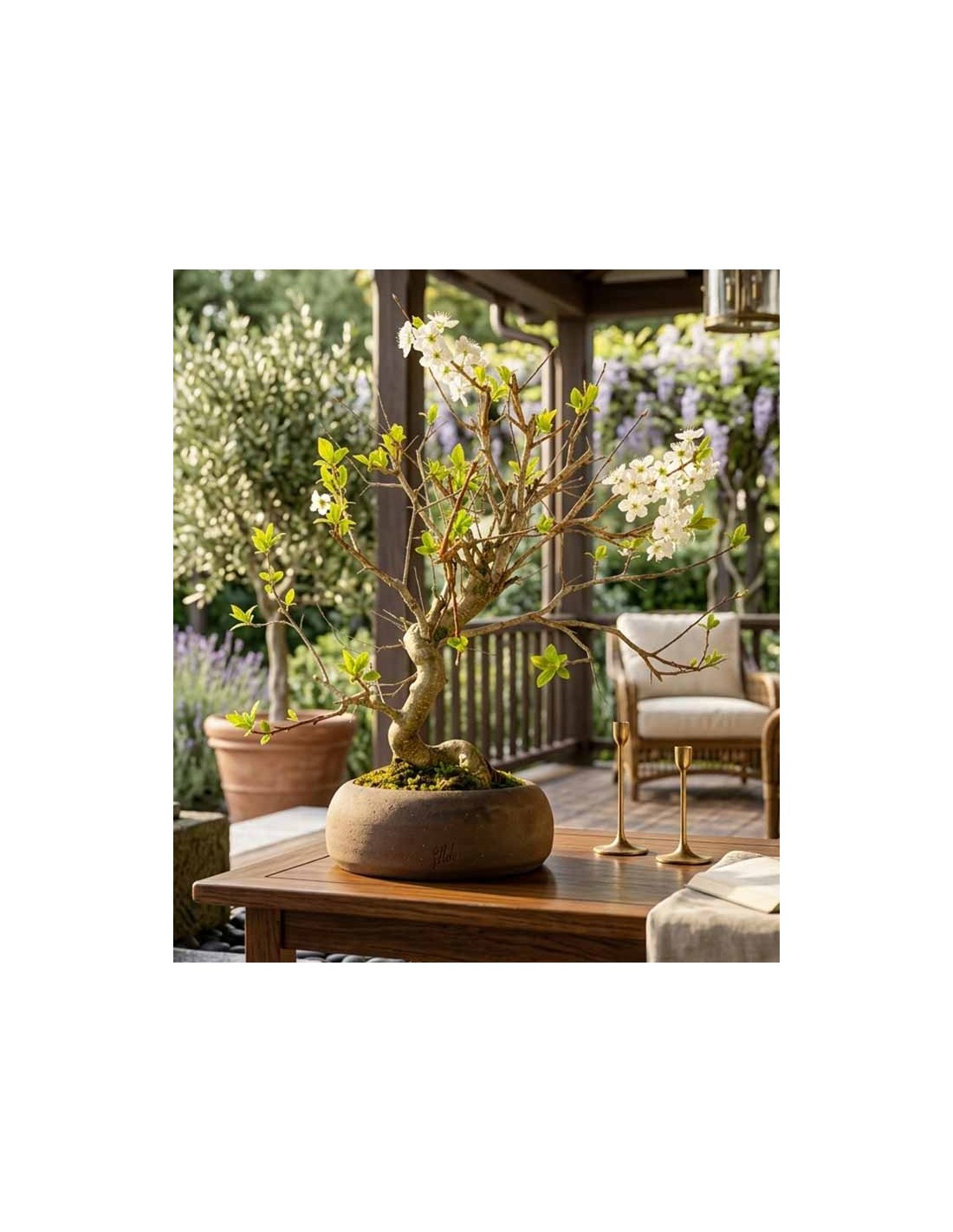 Comprare un bonsai online di questo livello significa inserire nella propria collezione un esemplare che regala momenti di rara bellezza, culminando in estate con la maturazione di piccoli frutti (prugne) dal grande valore decorativo.