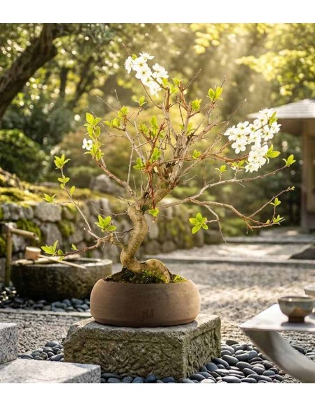 Porta a casa l'eleganza senza tempo del bonsai prugno: un pezzo di natura antica che sboccia nelle tue mani.