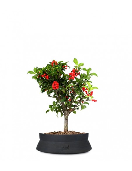 L'agrifoglio e? una pianta sempreverde che puo? avere uno sviluppo ad arbusto o a vero e proprio albero. Decisamente ornamentale, ha foglie lucide, di norma munite di spine, che si presentano di un verde scuro che, in diverse varieta?, si tramuta in color crema sui bordi o al centro. I fiori bianchi a grappolo sono il preludio dei frutti, piccole bacche rosse o nere che compaiono in autunno. Originario dell'emisfero australe, si coltiva facilmente anche come bonsai perche? non ha bisogno di particolari cure. Gli bastano annaffiature regolari e concimazioni durante la stagione vegetativa.