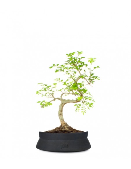 Il Frassino è un vigoroso e diffuso albero a foglie decidue, nativo di gran parte d'Europa dove arriva anche oltre i 30 metri di altezza. Facilmente riconoscibile in inverno dalle foglie nere. Questo bonsai durante i mesi invernali va collocato all'interno. Dalla primavera all'inizio dell'autunno, può essere posizionato all'esterno, riparato però dai raggi diretti del sole, soprattutto nei mesi di luglio e agosto, nei quali è indicato tenerlo all'ombra per proteggere le radici dal caldo torrido. Il tronco diventa grosso e robusto in pochi anni, mentre le piccole foglie composite gli conferiscono una leggerezza senza eguali. Produce dei graziosi fiori bianchi, leggermente sfumati di rosa, a forma di pannocchia.