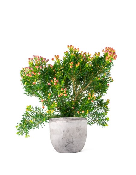 Il wax flower, detto anche fiore di cera o Chamelaucium, è un bellissimo arbusto profumato dal portamento arrotondato, che in natura vive nei boschi e nelle brughiere sabbiose dell'Australia Occidentale.Si presenta sottoforma di un delizioso alberello, caratterizzato da numerosi fusti sottili e legnosi, fittamente ricoperti da foglie aghiformi dal colore verde scuro che emanano un piacevole profumo agrumato se sfregate tra le dita.