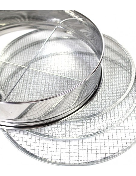 La più fine, 2 mm, viene utilizzato a livello estetico per rifinire la superficie del vaso; la maglia da 5mm per ricavare un terriccio idoneo alla coltivazione, infine quello da 6,9mm per ottenere un terriccio di drenaggio.