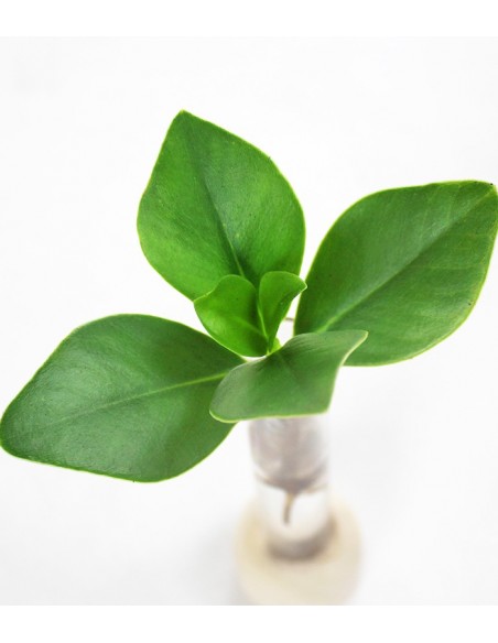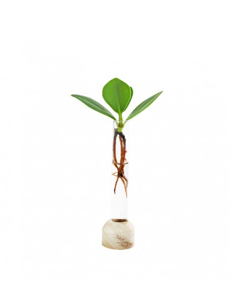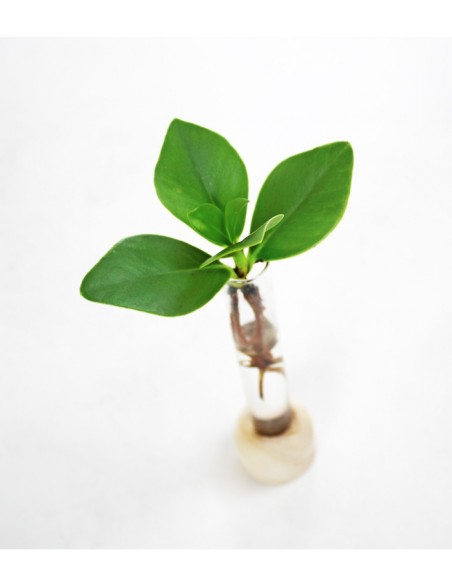 Una versione di clusia a “radice nuda” inserita all'interno di una piccola fiala di vetro sorretta da una base in legno chiaro. Un complemento d'arredo dal design nordico caratterizzata da forme eleganti e minimal. Il verde intenso delle foglie di clusia contrastano con il vetro del vaso, delineando un oggetto dall'indiscusso effetto scenico che donerà un tocco di stile alla vostra casa. Inserito in qualsiasi ambiente, da solo oppure abbinato ad altri vasetti in vetro con clusia, creerà un angolo green moderno e accattivante. Trattandosi di una pianta coltivata con l'idrocoltura, la sua cura non richiede grandi accortezze, se non quella di aggiungere acqua concimata non appena il livello dell'acqua presente nel vaso scende oltre il livello richiesto. La Clusia deve essere posta in una zona illuminata, ma non esposta alla luce solare diretta. Non sopporta le temperature inferiori a 18°.