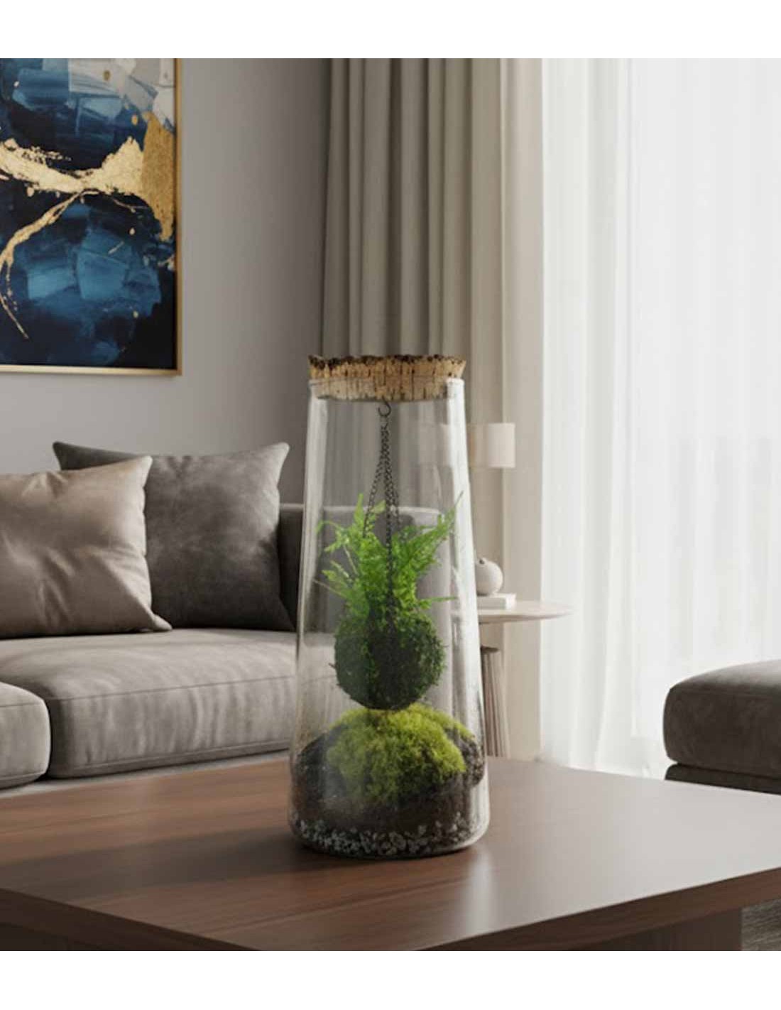 - Design elegante: ogni kokedama in terrario è una composizione unica, perfetta per arricchire ambienti moderni, minimal o naturali.