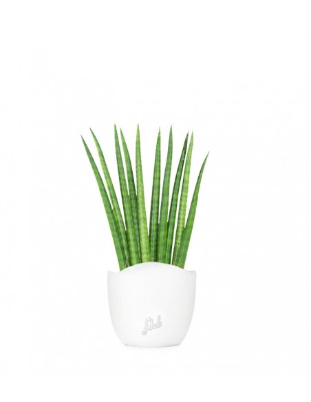 La sansevieria e? una pianta esotica originaria del Kenia. Le sue lunghe foglie erette, lucenti e carnose, di forma cilindrica sono di colore verde intenso. Negli ultimi anni la sanseveria si e? trasformata, da pianta “della nonna” ad un must have per la arredare la propria casa con stile. Con la sua silhouette moderna ed elegante diventa un vero e proprio elemento d'arredo da inserire in qualsiasi ambiente, dall'ufficio alla casa. E? una pianta dalle pochissime pretese, poiche? si adatta alle condizioni dello spazio in cui si trova ma soprattutto e? in grado di purificarne l'aria, convertendo l'anidride carbonica in ossigeno durante la notte. Inoltre nei paesi orientali e? associata alle tradizionali 8 virtu?: lunga vita, prosperita?, intelligenza, bellezza, arte, poesia, salute e forza.