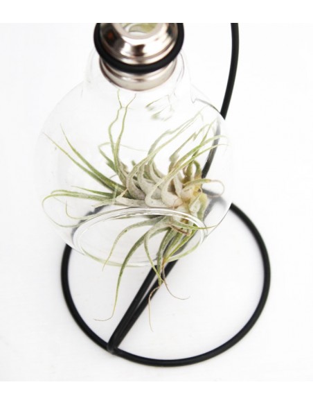 Storia e curiosità: la Tillandsia è una pianta versatile, priva di un vero e proprio apparato radicale, che assorbe dall'atmosfera il nutrimento ma anche gli agenti inquinanti. Materiale: vetro e metallo