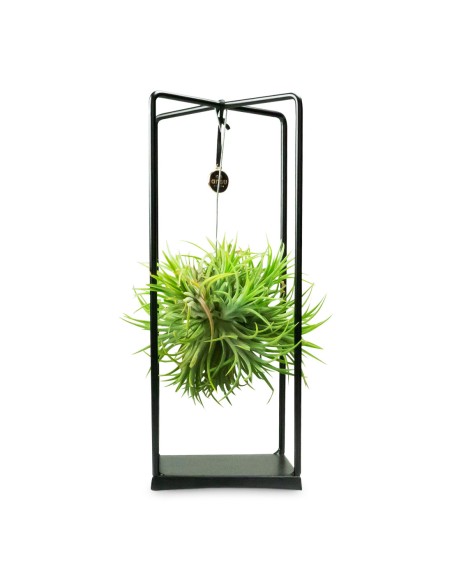 Una piccola tillandsia inserita all'interno di una struttura in metallo colore bianco, dalle forme geometriche eleganti e moderne che vi consentiranno di ammirare la vostra pianta a 360°. Le tillandsie comparvero anni fa nei salotti delle nostre nonne come ornamento per tavolini o vecchie credenze, oggi invece assumono una nuova connotazione moderna diventando un complemento d'arredo di design. Un vero e proprio must have che vi consentirà di aggiungere un tocco decorativo a qualsiasi ambiente della vostra casa. Le tillandsie vivono senza terra e proprio per la loro capacità di “nutrirsi d'aria” in natura si trovano ovunque, sulle rocce e sugli alberi ricreando affascinanti sculture viventi. Trattandosi appunto di una pianta aerea, la sua cura non richiede grandi accortezze, se non quella di spruzzare leggermente la tillandsia una volta alla settimana. Sarebbe bene posizionarla in una zona luminosa ma lontana dai raggi diretti del sole.