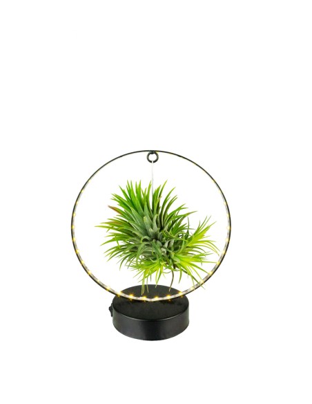 Questa Tillandsia è inserita in una struttura circolare illuminata da LED che rappresenta un oggetto decorativo ideale anche per un regalo! Con un'altezza di 24 cm e un diametro di 22 cm, questo oggetto di design è pronto a trasformare il tuo spazio con un tocco di eleganza.