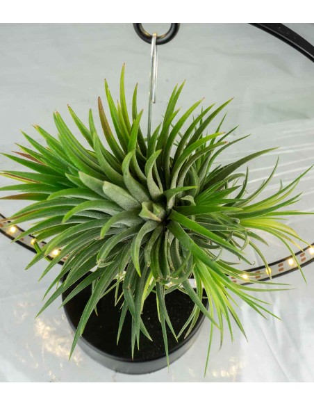 Illuminazione LED Integrata: La struttura circolare è dotata di LED, offrendo una luce soffusa che accentua la bellezza della Tillandsia.