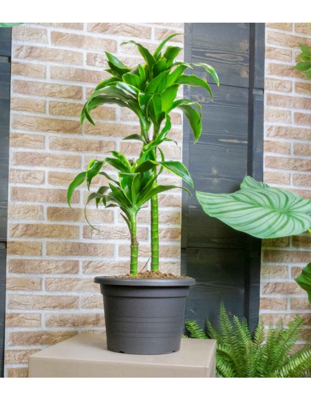 La Dracena Dorado ha due tronchi principali e foglie sottili e allungate, di colore verde intenso con striature più chiare. La pianta arriverà a casa vostra alta circa 80 cm e sarà in un vaso dal diametro di 24 cm.