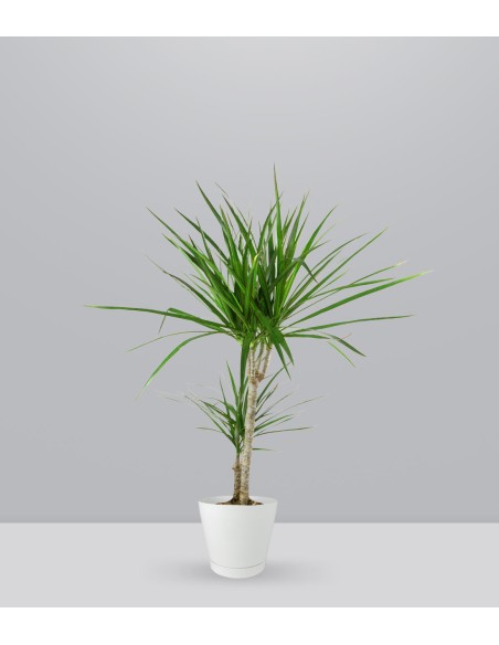 La Dracena Marginata, conosciuta anche come "Dracena dei margini rossi", è una pianta tropicale originaria dell'Africa occidentale. Caratterizzata da foglie sottili e allungate che si curvano elegantemente verso l'alto, questa pianta è ampiamente apprezzata per la sua eleganza e la sua capacità di adattarsi agli ambienti interni. Il vaso in cui è contenuta la Dracena Marginata ha un diametro di 23 cm e un'altezza di circa 85-90 cm, il che la rende una presenza maestosa in qualsiasi spazio.
