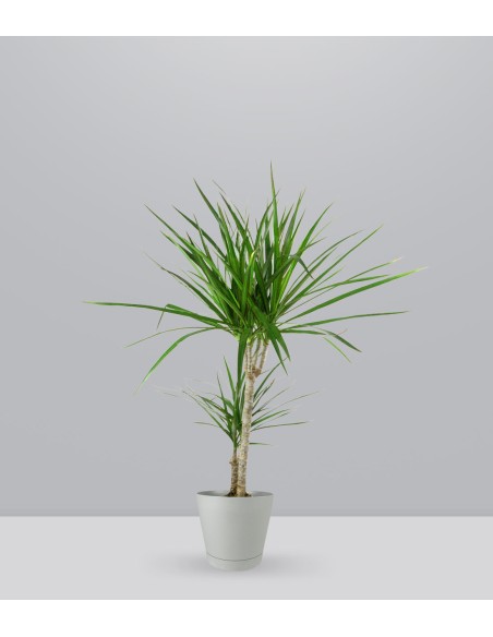 La Dracena Marginata, conosciuta anche come "Dracena dei margini rossi", è una pianta tropicale originaria dell'Africa occidentale. Caratterizzata da foglie sottili e allungate che si curvano elegantemente verso l'alto, questa pianta è ampiamente apprezzata per la sua eleganza e la sua capacità di adattarsi agli ambienti interni. Il vaso in cui è contenuta la Dracena Marginata ha un diametro di 23 cm e un'altezza di circa 85-90 cm, il che la rende una presenza maestosa in qualsiasi spazio.