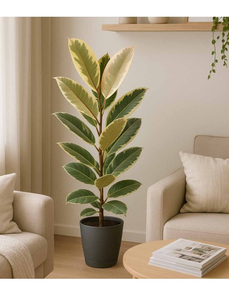 Il ficus elastica tineke non richiede cure complesse. Cresce bene con luce indiretta brillante e irrigazioni moderate. Perfetta per chi cerca una pianta d'effetto visivo con bassa manutenzione. È adatta anche a chi è alle prime armi con il giardinaggio indoor.