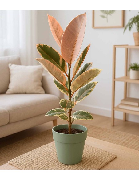 Il ficus tineke è una delle varietà più affascinanti del ficus elastica, grazie al suo fogliare variegato con tonalità rosa, crema e verde. Questo esemplare da H70 cm in vaso Ø20 cm è perfetto per dare un tocco raffinato e moderno agli ambienti interni.