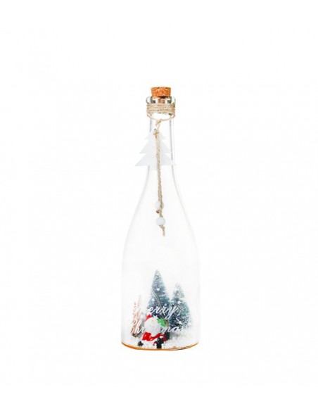 Una bottiglia in vetro dalle forme essenziali che contiene al suo interno un paesaggio natalizio innevato con un babbo natale che fa da protagonista, il tutto illuminato da micro led. Si tratta di un elegante elemento decorativo, che grazie al suo design in vetro si adatta ad ogni ambiente, creando angoli di tendenza e diffondendo una piacevole atmosfera. Potrete utilizzarla come luce notturna oppure semplicemente appoggiarla su un tavolino insieme ad altre luci, candele o decorazioni per ricreare magici angoli natalizi.