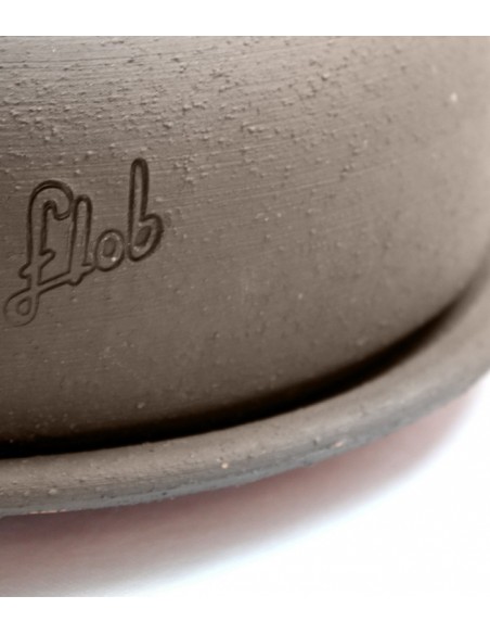 La forma essenziale delle superfici deriva dall'ispirazione zen, connubio perfetto con l'arte orientale del bonsai. Il movimento circolare del tornio con cui il vasaio crea questi sottovasi imprime delle naturali venature circolari alla superficie che successivamente viene colorata a mano lasciando grezza solo la pare centrale su cui viene inciso il logo Flob.
