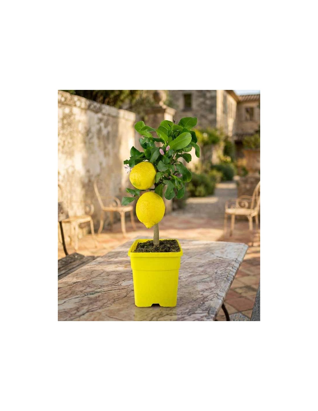 Il limone in vaso si distingue per le sue foglie verde brillante, i fiori bianchi intensamente profumati e i frutti gialli ricchi di succo. Con le giuste cure, la pianta di limone ornamentale produce frutti più volte durante l'anno, diventando un elemento decorativo e funzionale per qualsiasi spazio esterno.