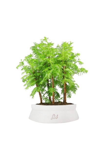 La metasequoia boschetto è un pianta primitiva che si riteneva estinta e che invece è stata riscoperta in Cina negli anni Quaranta. Appartiene alla famiglia delle conifere e si presenta con una bella chioma formata da verdi foglie aghiformi che durante l'autunno assumono un brillante colore giallo-rosso. Si tratta di una specie vegetale molto apprezzata come bonsai perché la sua coltivazione è molto semplice, infatti non teme il freddo e può essere tenuta all'esterno anche in inverno. Ama i terreni umidi perciò le annaffiature devono essere frequenti, soprattutto durante l'estate, periodo in cui è bene posizionarla all'ombra.