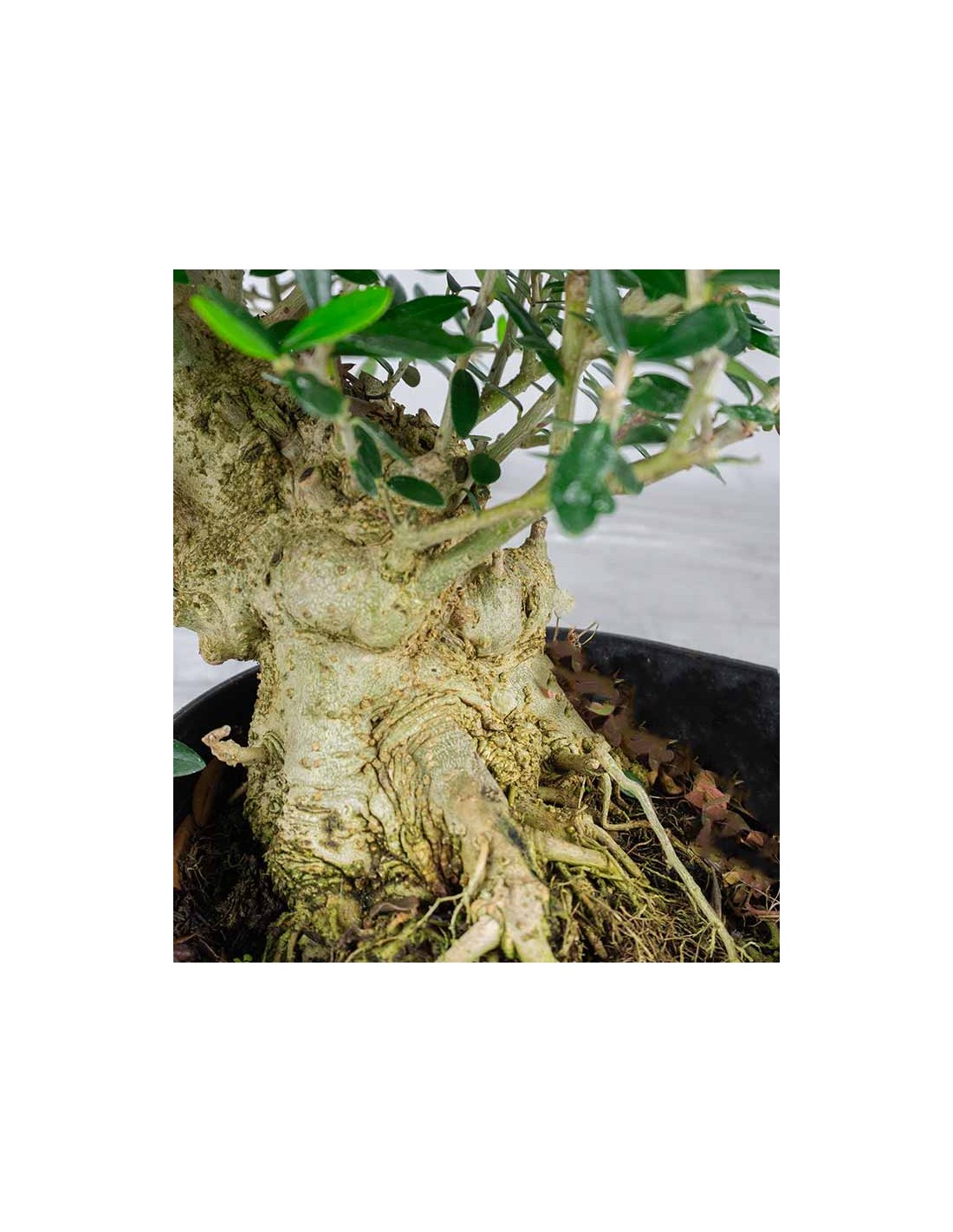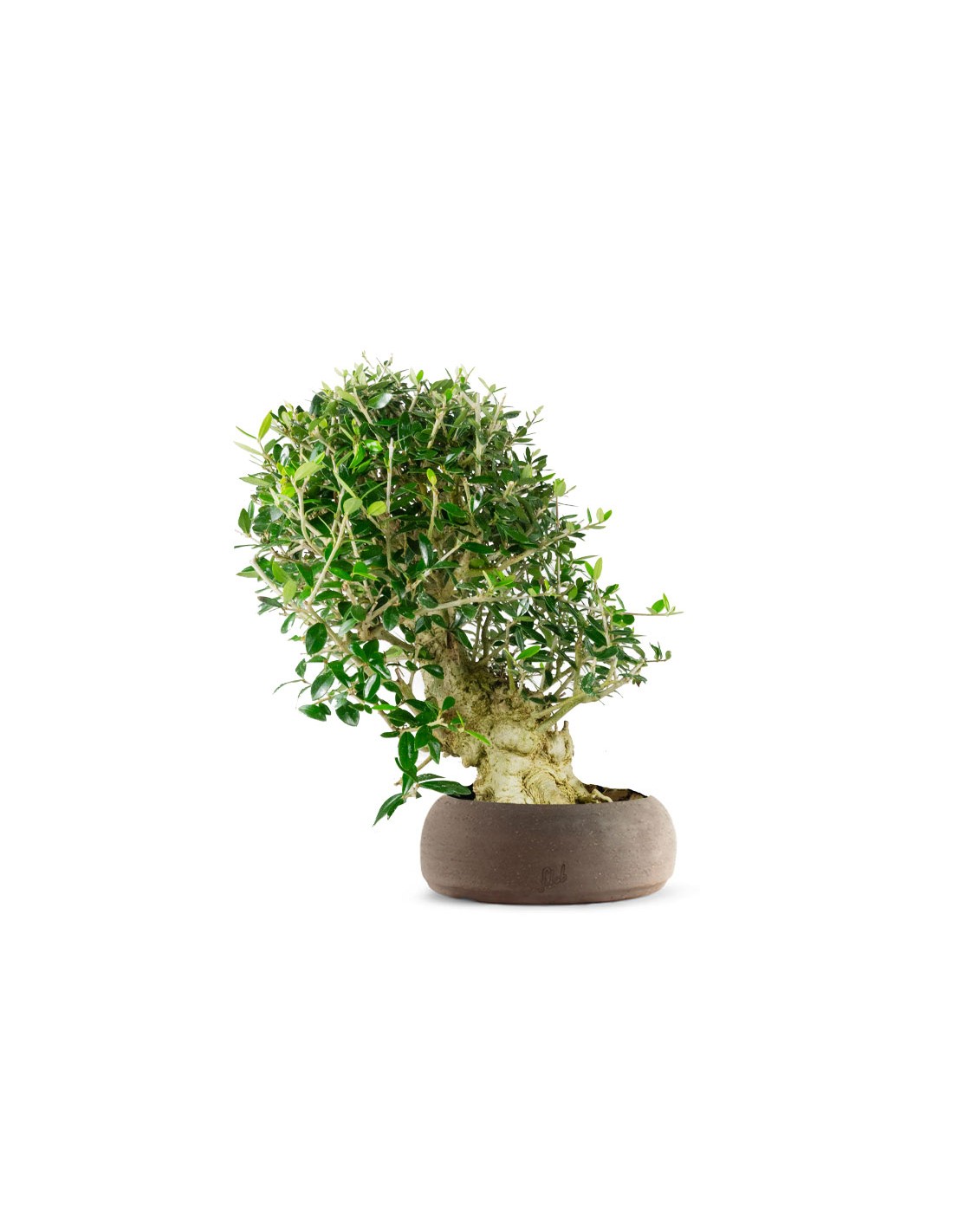 L'olivastro è una pianta sempreverde originaria del medio oriente ed è considerato la varietà spontanea dell'olivo. Il tronco rugoso e forte sostiene un apparato fogliare vigoroso, costituito da foglie piccole e ovali. La pagina superiore si presenta di un colore verde intenso, mentre quella inferiore è grigio/argento per la presenza di peli a forma di stella. I frutti sono piccoli e ovoidali, di colore prima verde, poi nero-rossastro a maturità raggiunta. Questo esemplare di olivastro ha 17 anni e presenta un'altezza media ma un tronco già possente, che gli restituisce un aspetto decisamente massiccio. Grazie alla sua rusticità è considerato un bonsai tendenzialmente di facile coltivazione, in grado di rendere più accattivante e raffinato l'ambiente casalingo. Inoltre porta con se un valore intrinseco importante, tanto da essere considerato l'espressione più alta del legame fra uomo e natura.