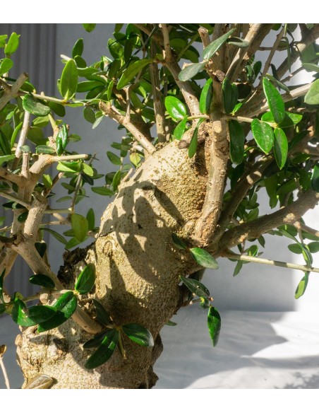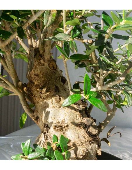 L'Olivastro bonsai di 15 anni ha un tronco forte e sinuoso, dall'aspetto rustico che trasmette un'idea di forza molto apprezzata da tutti gli esperti ed amanti di bonsai.