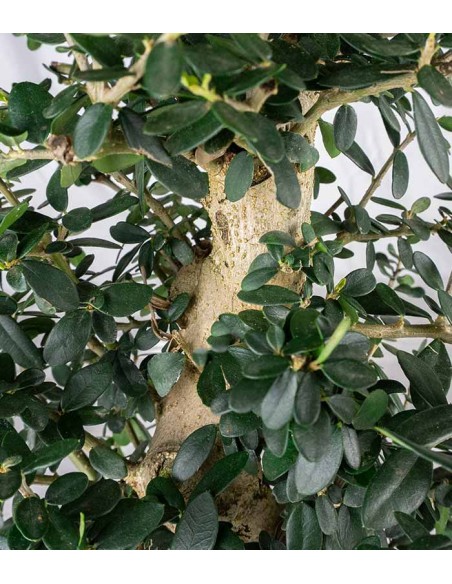 La corteccia è rugosa con bellissime scanalature che gli conferiscono un aspetto vissuto e molto particolare, unico nel suo genere. Le foglie dell'Olivastro sono piccole e profumate, del tipico color oliva intenso e di forma ovale.