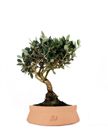 Le nostre piante di olivo bonsai sono interrate in comodi ed eleganti vasi di 20 centimetri di diametro, disegnati e creati da Flob utilizzando esclusivamente argilla italiana: acquistala nel nostro negozio online, ti arriverà direttamente a casa in un imballo studiato appositamente per preservala in ottimo stato.