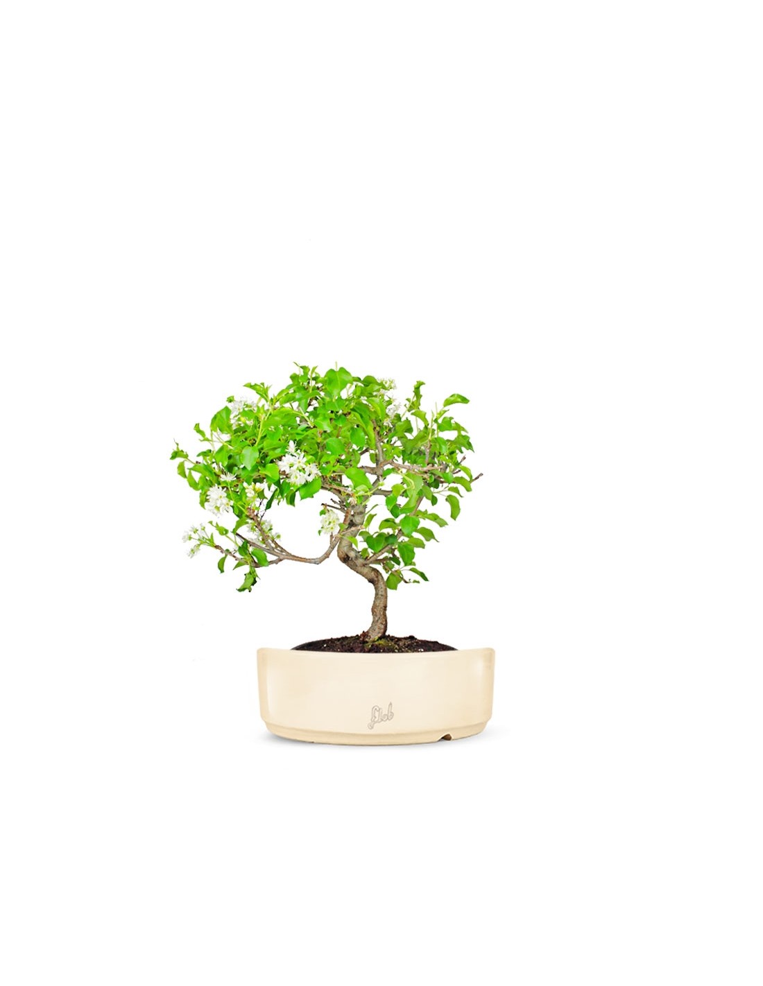 Il ciliegio canino o prunus mahaleb è un bonsai a foglia decidua dal tronco sinuoso e dalla chioma allargata. Le sue foglie, arrotondate, lucenti e di colore verde intenso, assumono vivaci tinte di giallo in autunno. A metà e tarda primavera produce invece fiori a coppa, bianchi, molto profumati e raccolti in racemi. I frutti sono piccole amarene, inizialmente di colore verde, che poi vira verso il nero una volta a maturazione. Questi ultimi sono adoperati per la fabbricazione di liquori, nella confezione di essenze di frutta, profumi e per aromatizzare il tabacco.