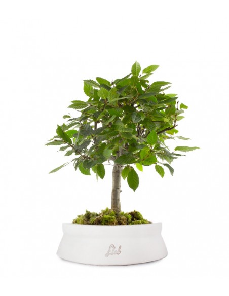 Secondo la tradizione, il re Astolfo era a caccia con il suo falco quando a un tratto lo perse di vista. Fece allora un voto: se lo avesse ritrovato, avrebbe eretto una città e una chiesa dedicata alla Madonna. Astolfo vide il suo falco appollaiato su un albero di carpino e, in onore di questa pianta, fondò la città di Carpi. La versione bonsai del carpinus betulus mantiene intatto il fascino di quest'albero che con il colore argenteo-violaceo della sua corteccia contribuirà a creare un raffinatissimo angolo di natura nel tuo appartamento. Il Carpinus Betulus predilige ambienti soleggiati ma non il pieno sole. Il bonsai richiede di essere concimato ogni due settimane e dopo i primi germogli la concimazione va intensificata con cadenza settimanale per un mese. Le gemme apicali devono essere sottoposte a pinzatura: questo contribuirà ad accorciare gli internodi e a conferire alla pianta l'estetica e la forma desiderate. La potatura deve essere eseguita in inverno per consentire una ripresa più vigorosa nell'anno successivo. Il rinvaso può essere eseguito fra novembre e marzo, ovvero nel periodo compreso fra la caduta delle foglie e l'apertura delle gemme.