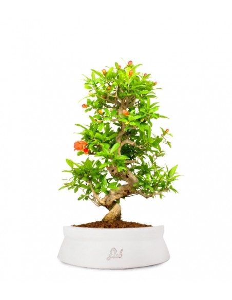Il Punica Granatum, o più comunemente melograno, è una specie che ben si presta alla coltivazione come bonsai, poiché sopporta di buon grado le potature drastiche e le pinzature. Altamente ornamentale, affascina grazie alla fitta ramificazione, alla splendida fioritura e al rosso brillante dei frutti. Il nome di derivazione latina, letteralmente "pomo con semi", sottolinea le affinità del frutto alla mela, con cui, però, a ben vedere, condivide soltanto la forma. I succosi chicchi del melograno si prestano ad ampi impieghi nella cucina non solo mediterranea, ma anche medio-orientale e asiatica. Il Punica Granatum trae grandi benefici dall'irradiazione diretta, perciò posiziona il vaso in pieno sole durante l'estate, mentre proteggilo dalle rigidità del clima in inverno. Innaffia a intervalli regolari, così da permettere al terreno di asciugarsi. Il rinvaso va effettuato ogni due anni, mentre la potatura e la pinzatura nella stagione primaverile.