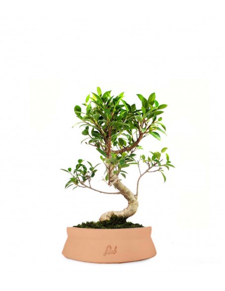 Il tronco è di colore biancastro, mentre il fogliame ha una bella tonalita? di verde intenso ed ogni foglia ha forma ovale ed appuntita. L'aspetto maggiormente caratterizzante di questa pianta sono le spettacolari radici, che creano un affascinante groviglio fuori terra, e proprio per questo è uno dei bonsai che più si adatta allo stile giapponese “Neagari”, ovvero a radici esposte. Inoltre, dai rami spesso partono altre radici aeree, che una volta raggiunta terra formano degli ulteriori tronchi. Il Ficus retusa è particolarmente indicato a chi vuole avvicinarsi al mondo dei bonsai, le sue caratteristiche da pianta da appartamento e la sua longevità lo rendono ideale per coltivare questa passione.